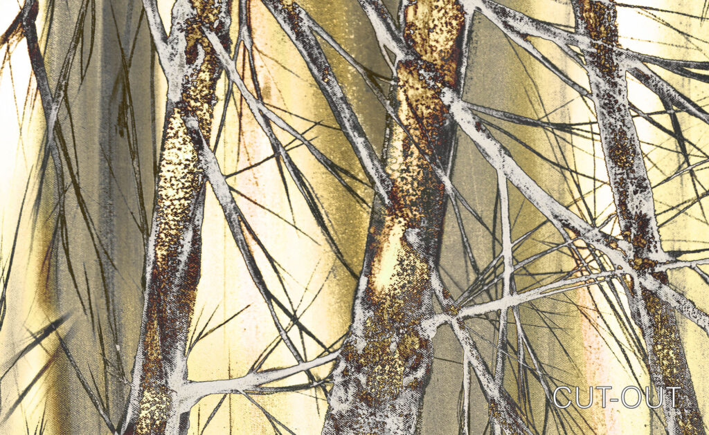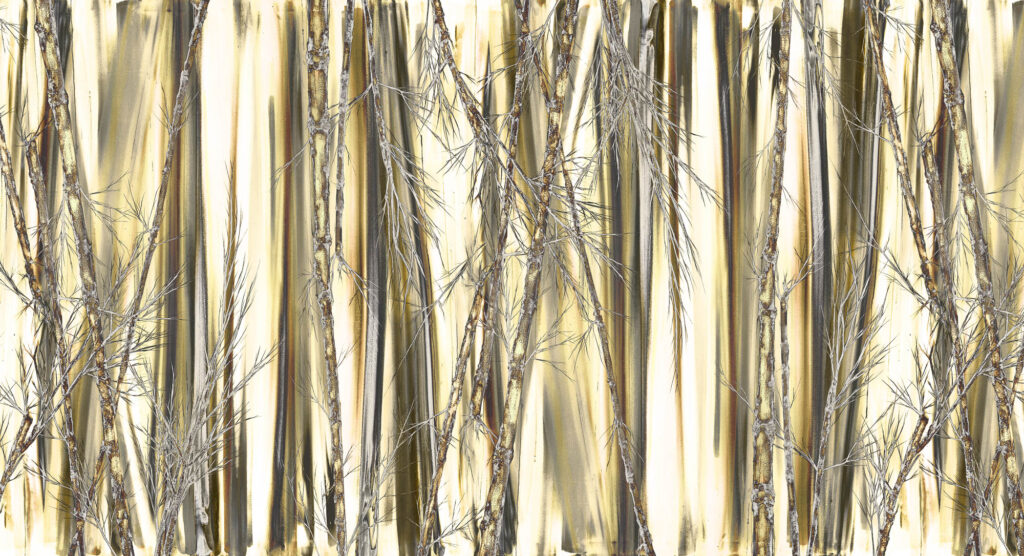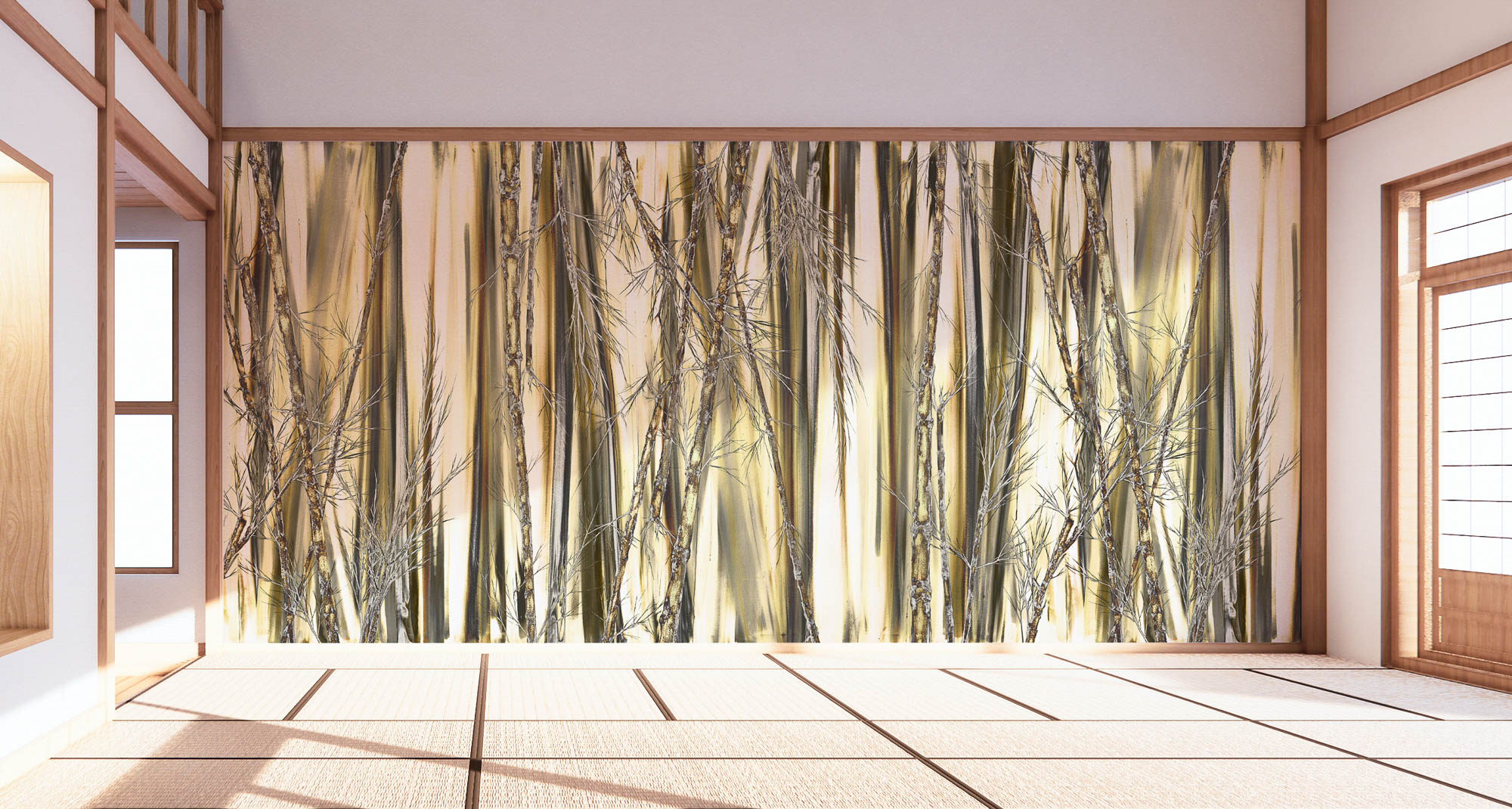 AYUMI zeigt die reduzierte Darstellung von Bambus – grafisch, klar und ruhig gesetzt. Die vertikale Struktur verleiht dem Motiv eine architektonische Spannung und Tiefe.
