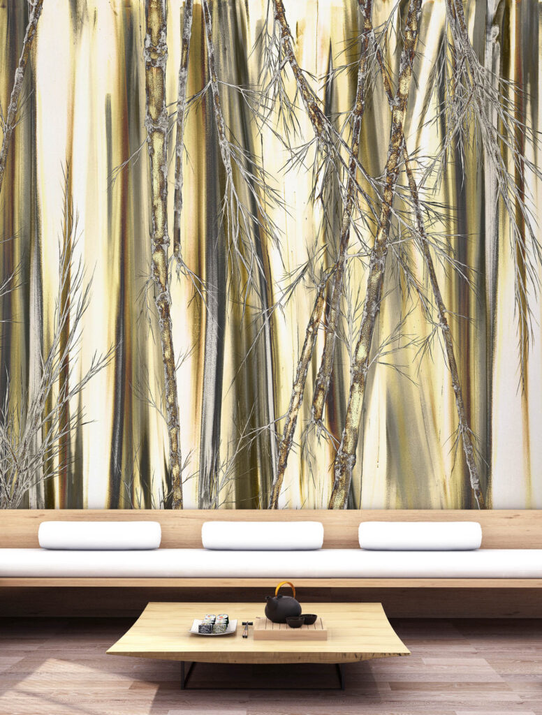Das Design basiert auf einem handgemalten Original und verbindet Naturbezug mit einer linearen Ordnung. AYUMI schafft eine kontemplative Raumwirkung – zurückhaltend, strukturiert, zeitlos.