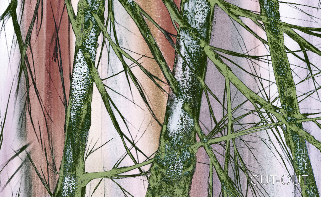 AYUMI zeigt die reduzierte Darstellung von Bambus – grafisch, klar und ruhig gesetzt. Die vertikale Struktur verleiht dem Motiv eine architektonische Spannung und Tiefe.