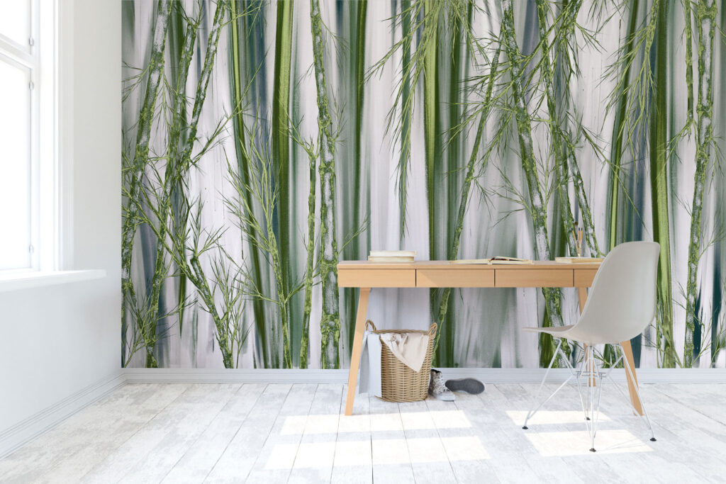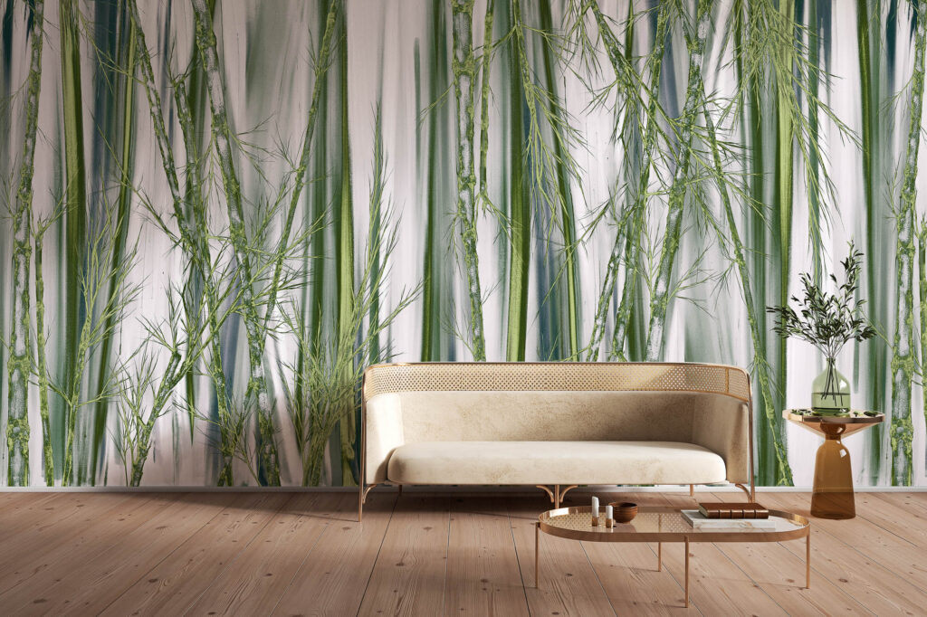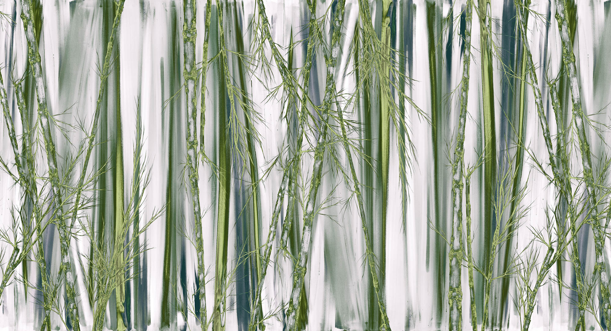 AYUMI zeigt die reduzierte Darstellung von Bambus – grafisch, klar und ruhig gesetzt. Die vertikale Struktur verleiht dem Motiv eine architektonische Spannung und Tiefe.