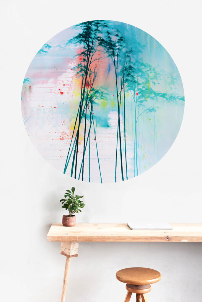 Der Tapetenkreis ist in 80 cm und 100 cm erhältlich und wird auf hochwertiger 150 g selbstklebender Vliestapete gedruckt.