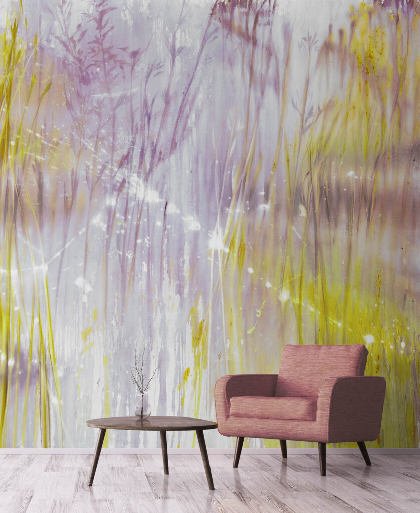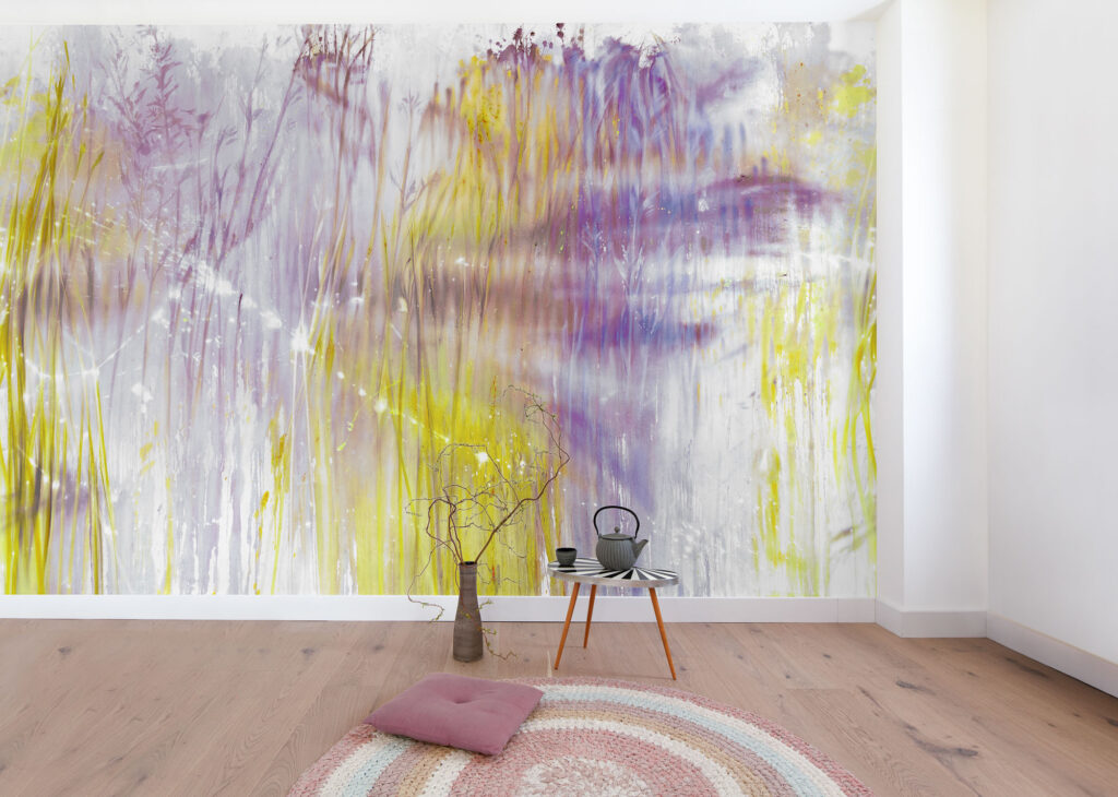 Der Entwurf basiert auf einem handgemalten Original. Die Kompositionen wirken offen, lebendig und leicht – und entfalten eine subtile Präsenz im Raum.