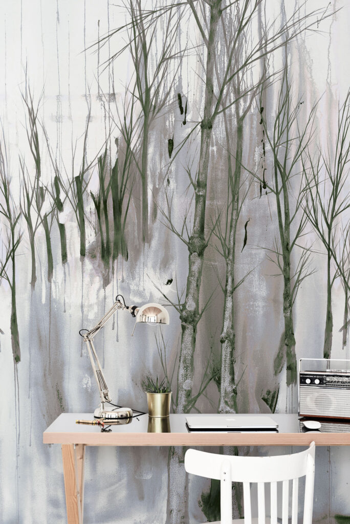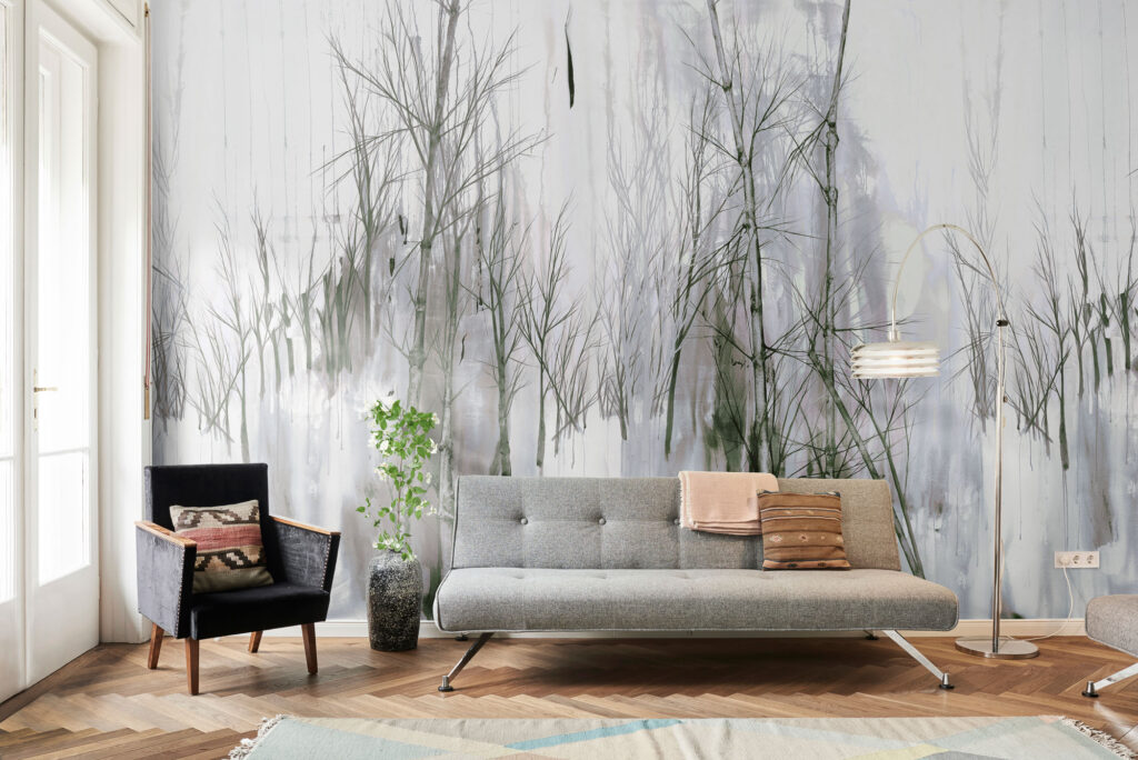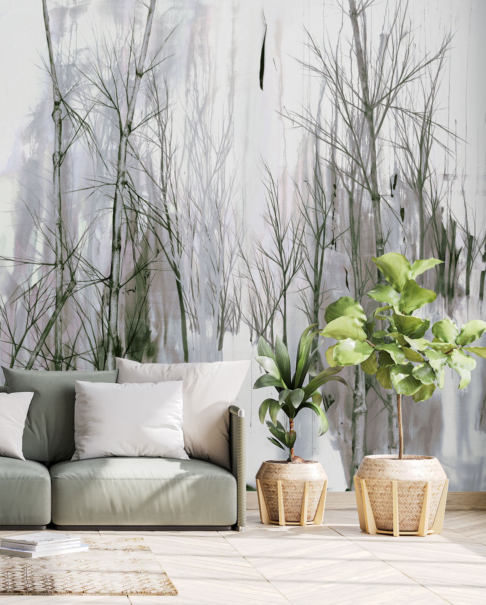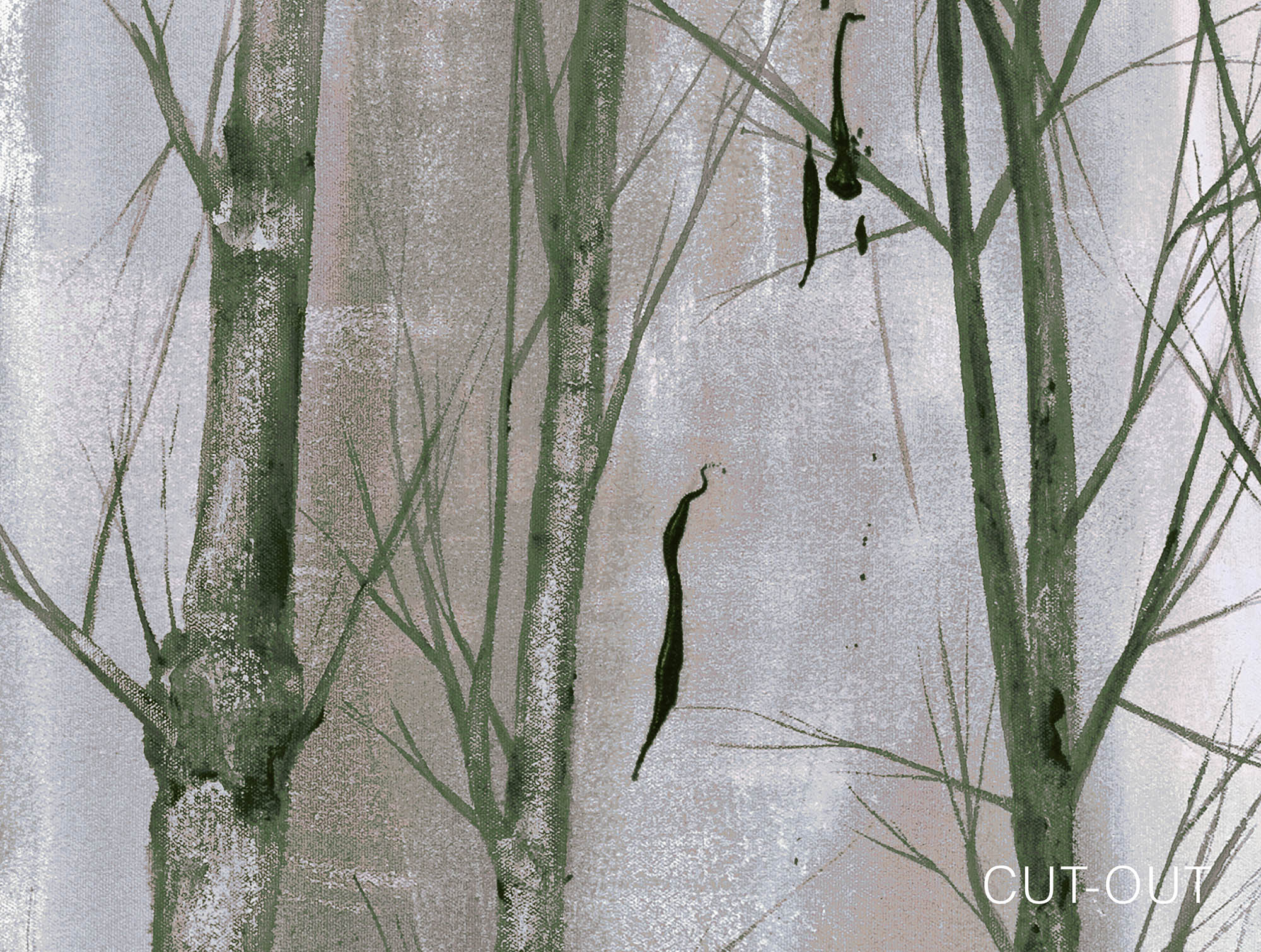 Die RIKU-Kollektion übersetzt lineare Strukturen in stille, vertikale Kompositionen. Feine Linien erinnern an Baumstämme und Äste – klar, zurückhaltend, raumbildend.