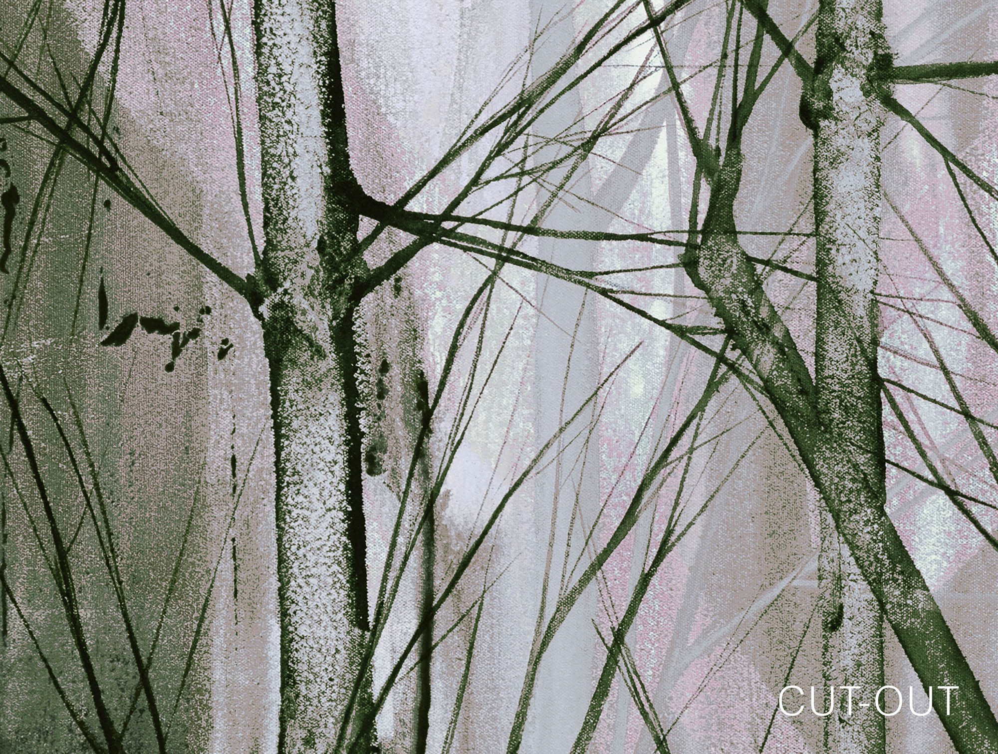 Der Entwurf basiert auf einem handgemalten Original. Zwischen Raum, Rhythmus und Leere entsteht eine Atmosphäre von Ruhe und Konzentration.
