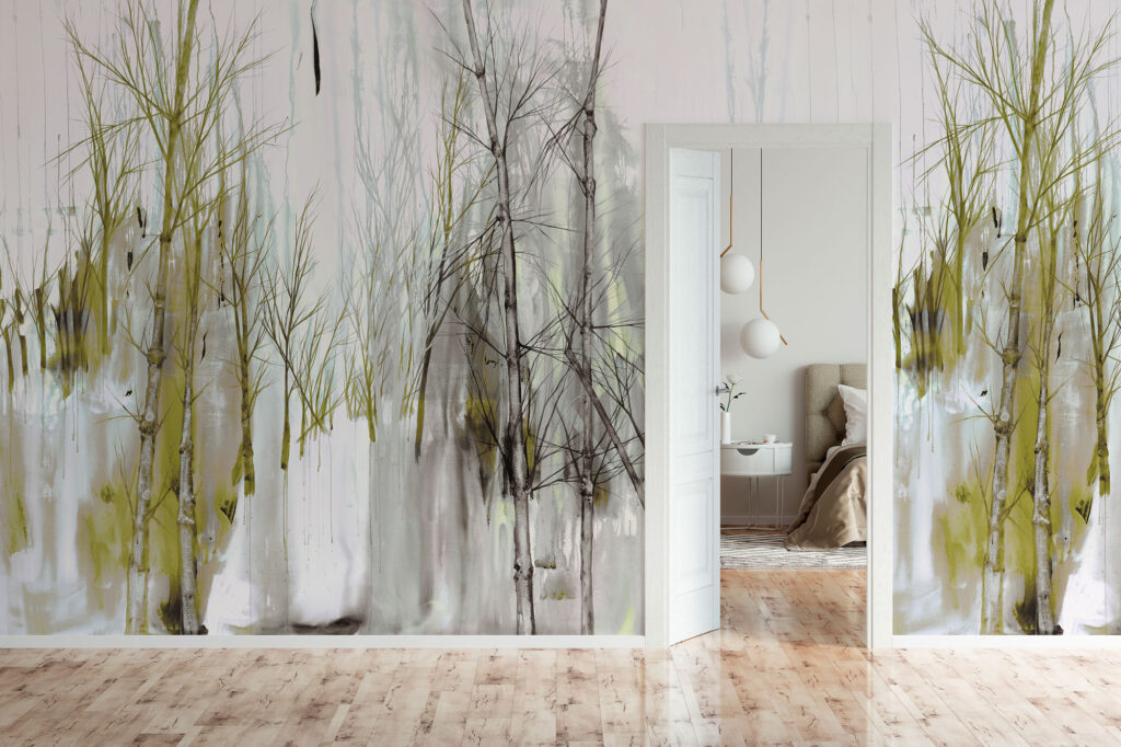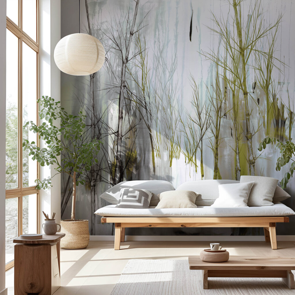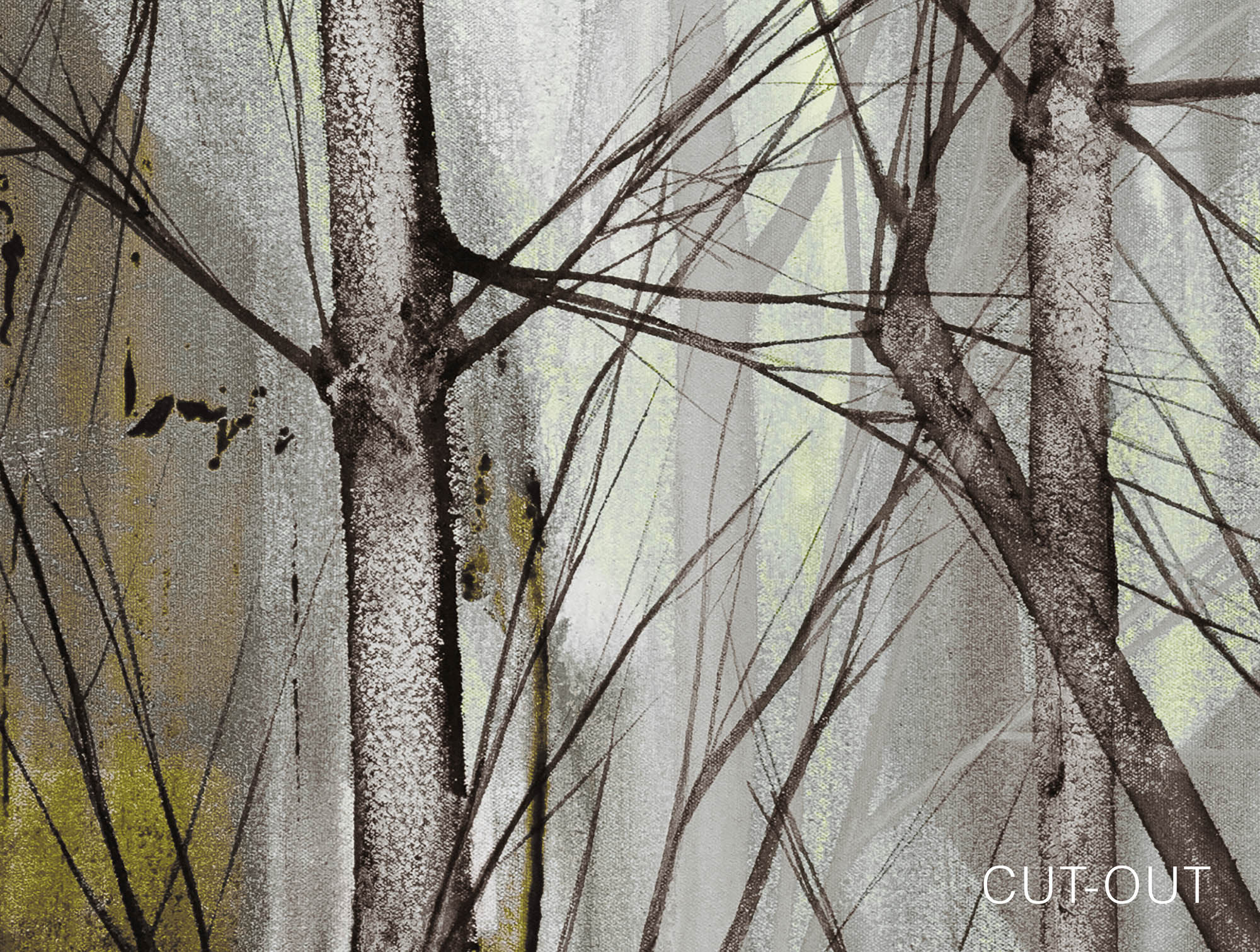 Die RIKU-Kollektion übersetzt lineare Strukturen in stille, vertikale Kompositionen. Feine Linien erinnern an Baumstämme und Äste – klar, zurückhaltend, raumbildend.