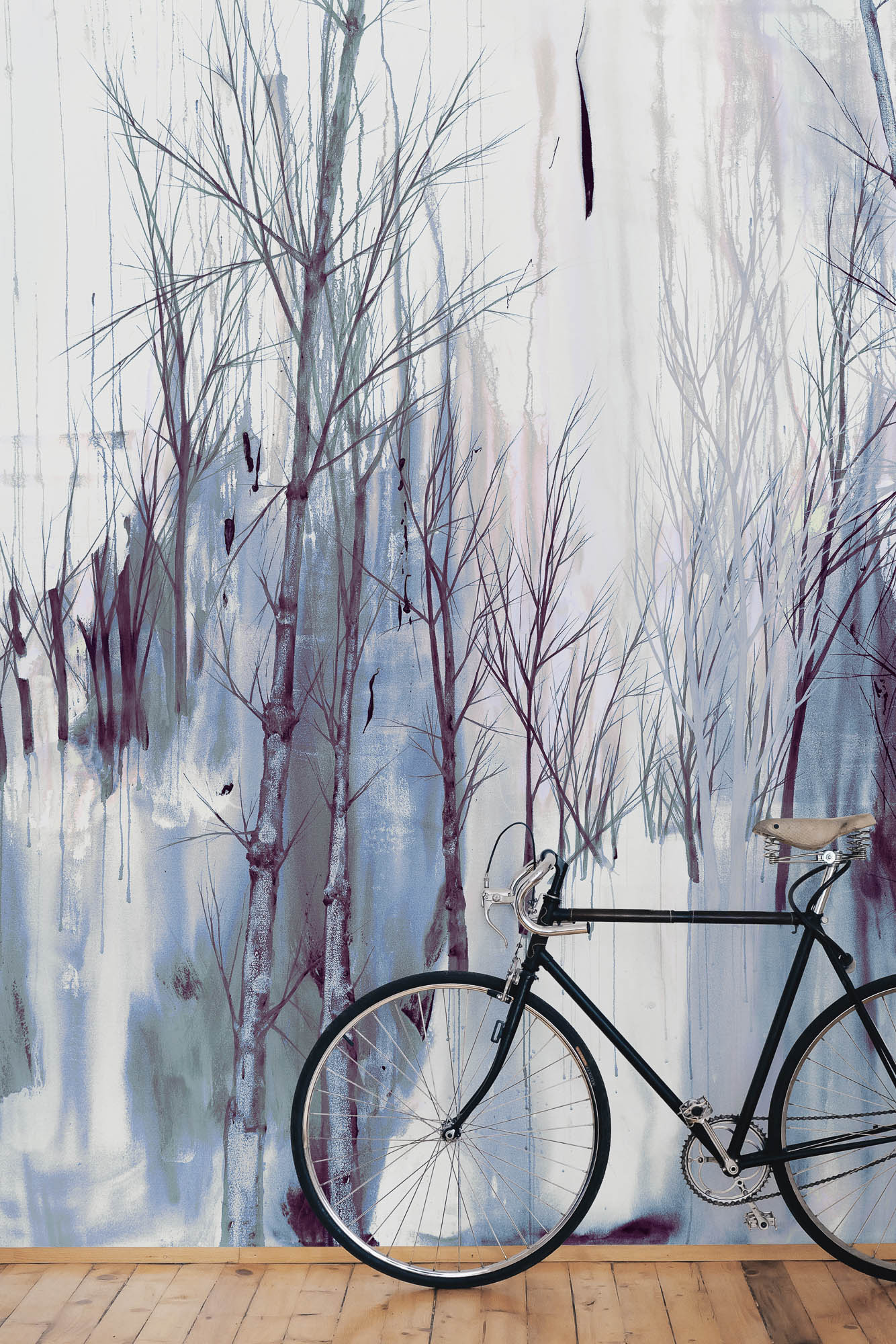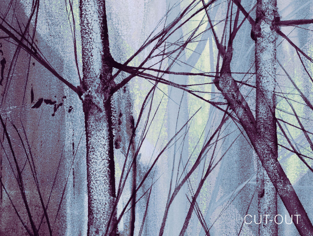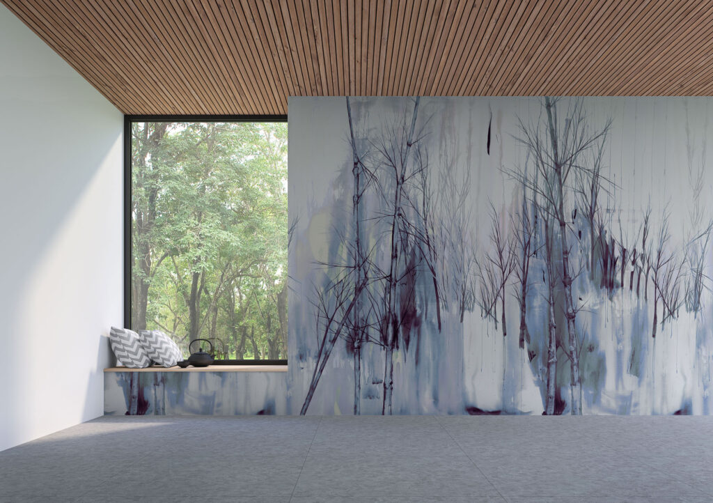 Der Entwurf basiert auf einem handgemalten Original. Zwischen Raum, Rhythmus und Leere entsteht eine Atmosphäre von Ruhe und Konzentration.
