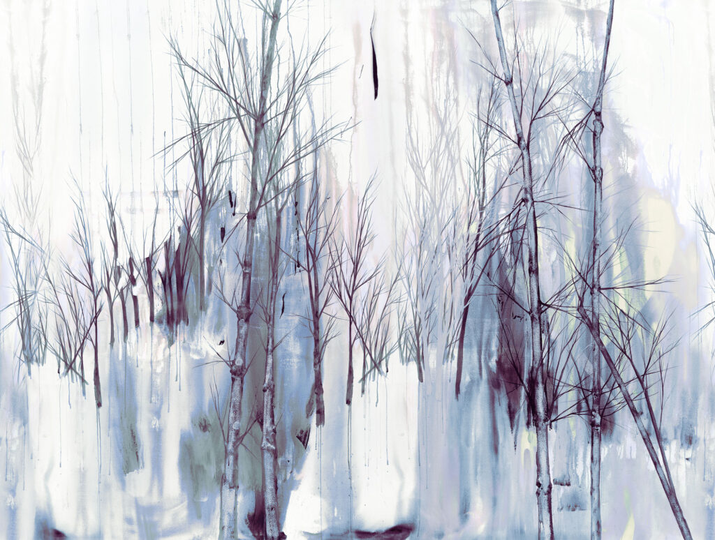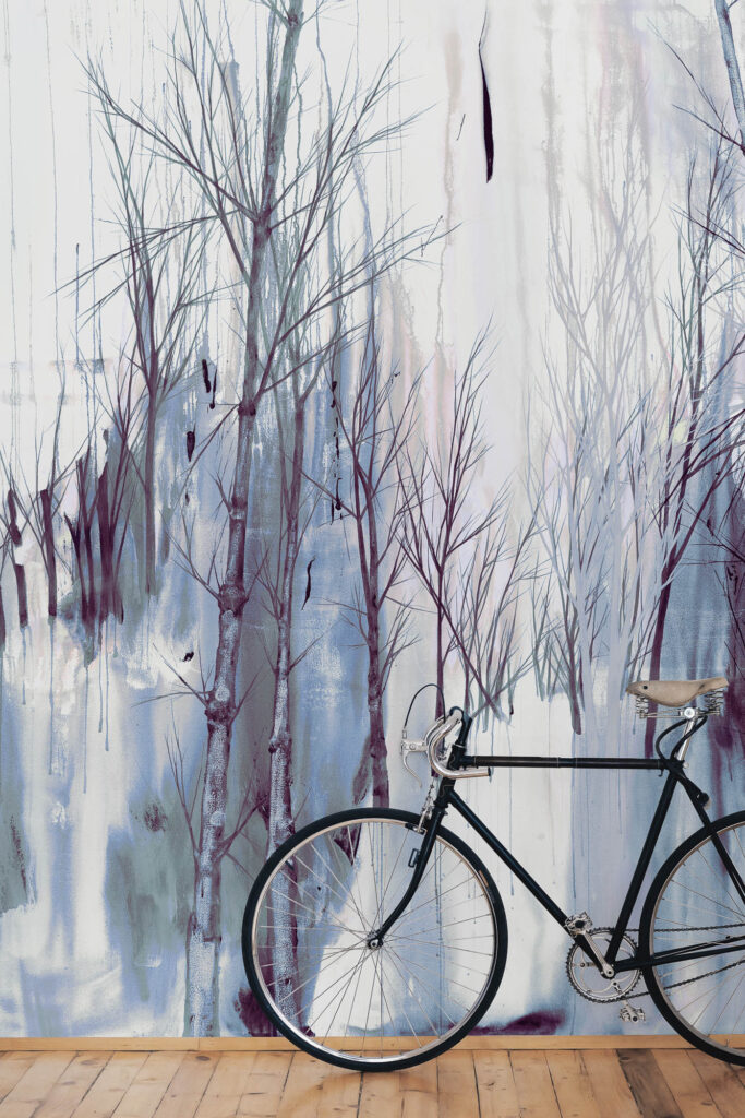 Die RIKU-Kollektion übersetzt lineare Strukturen in stille, vertikale Kompositionen. Feine Linien erinnern an Baumstämme und Äste – klar, zurückhaltend, raumbildend.