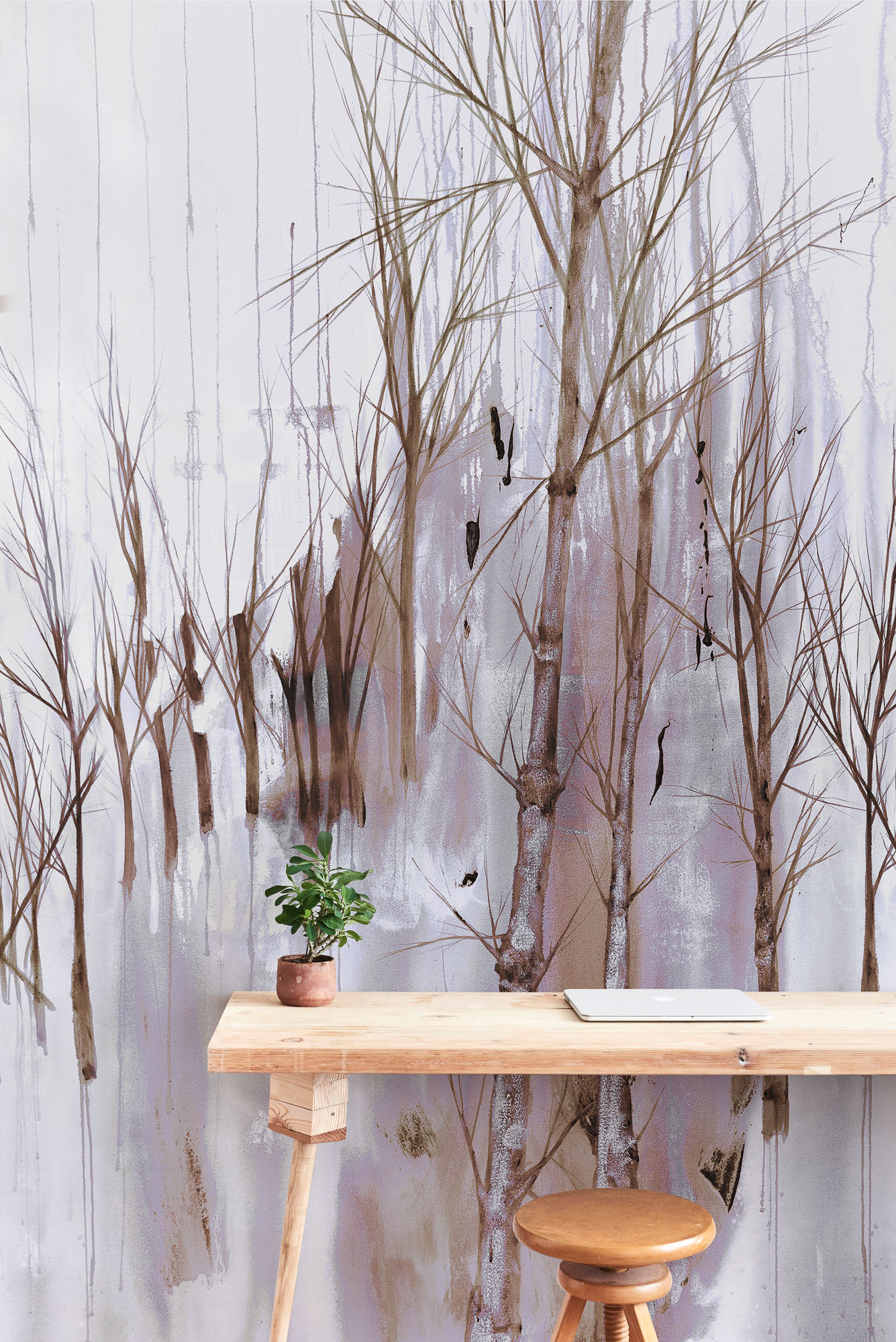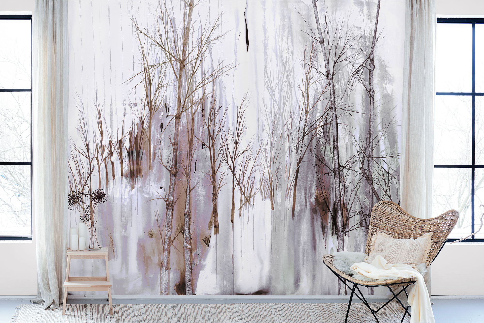 Die RIKU-Kollektion übersetzt lineare Strukturen in stille, vertikale Kompositionen. Feine Linien erinnern an Baumstämme und Äste – klar, zurückhaltend, raumbildend.
