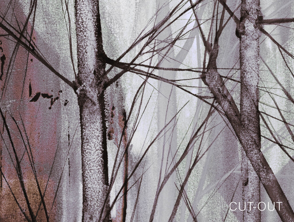 Der Entwurf basiert auf einem handgemalten Original. Zwischen Raum, Rhythmus und Leere entsteht eine Atmosphäre von Ruhe und Konzentration.