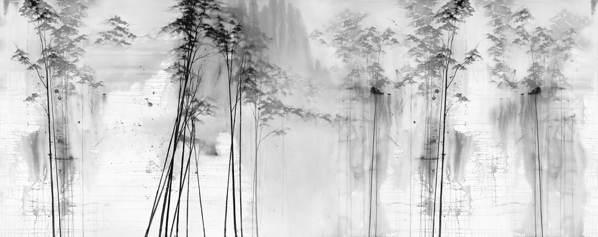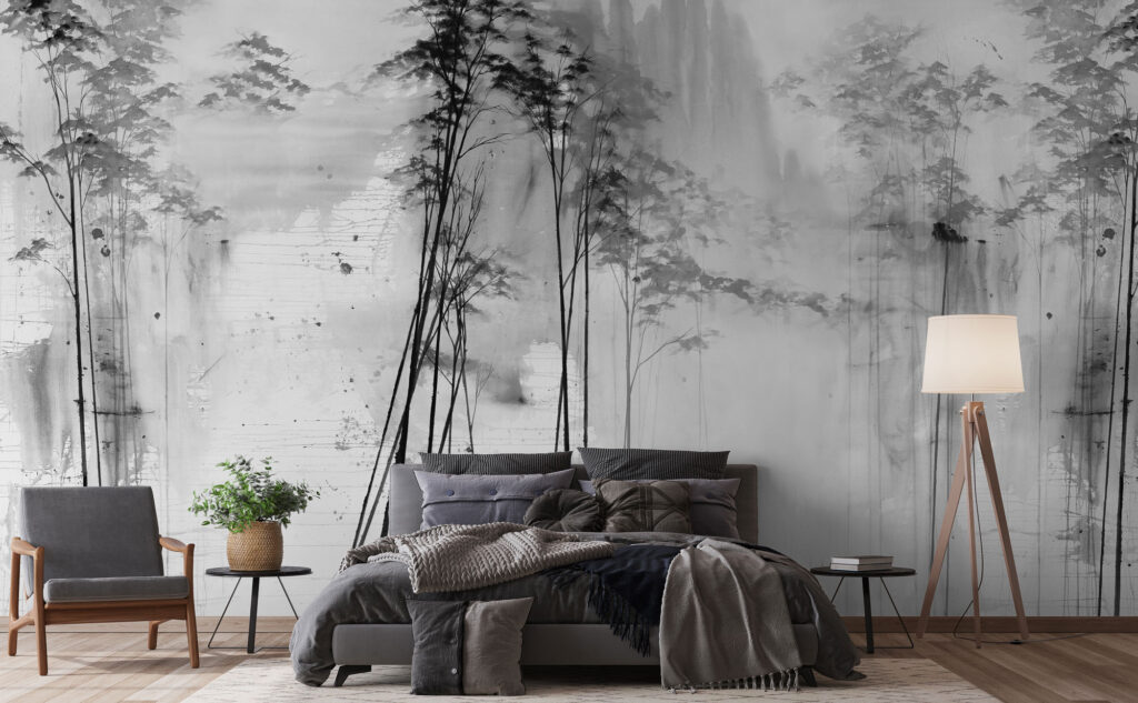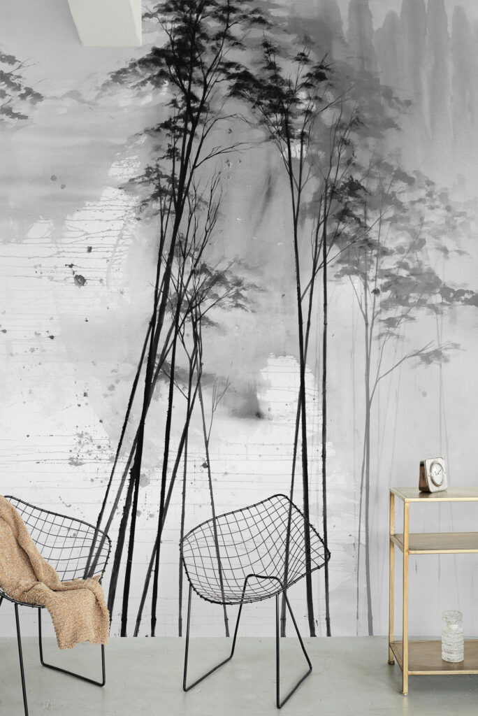 Die SHINRIN-Kollektion übersetzt die Bildsprache japanischer Tuschemalerei in zeitgenössisches Tapetendesign. Jeder Entwurf basiert auf einem handgemalten Original und folgt der Idee von Reduktion, Leere und Konzentration – zentralen Prinzipien der Zen-Ästhetik.