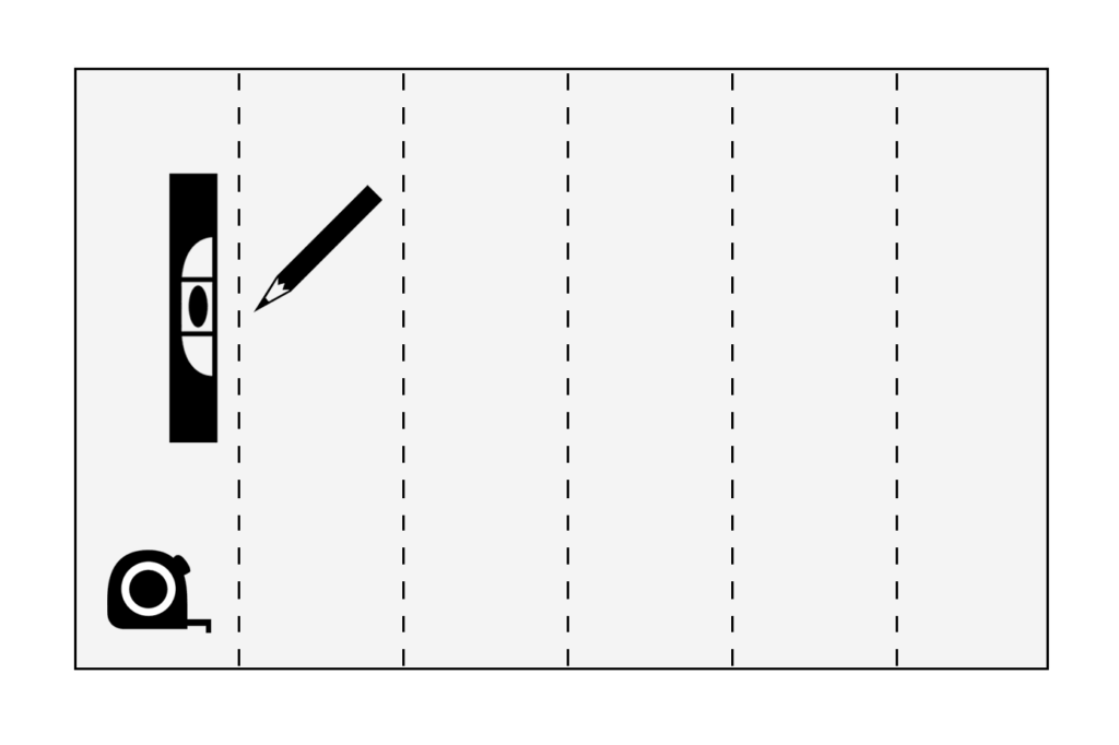 1. Mit Wasserwaage senkrechte Linie ziehen – ca. eine Bahnbreite von der linken Wandecke entfernt