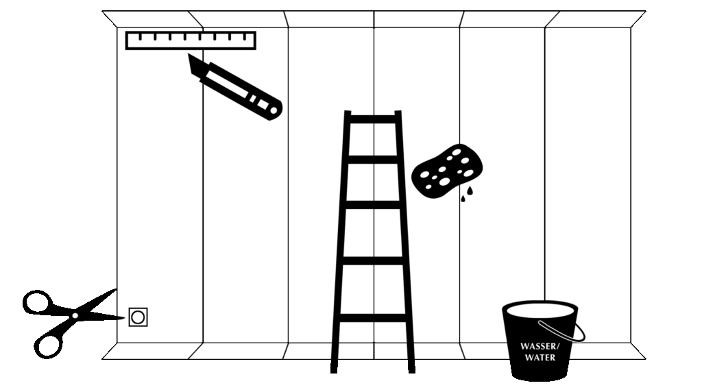 • Mit scharfem Cutter an Wandkante oder mit Schneidelineal